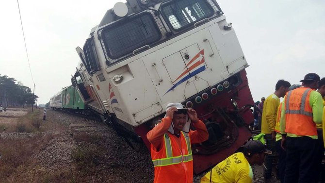 Proses Evakuasi Kereta Api Argo Bromo Anggrek yang Anjlok di Stasiun Pagaden Baru